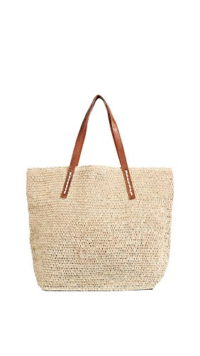 A slouchy Mar Y Sol tote in woven straw. The magnetic top line opens to a lined, 1-pocket interior. Leather handles.